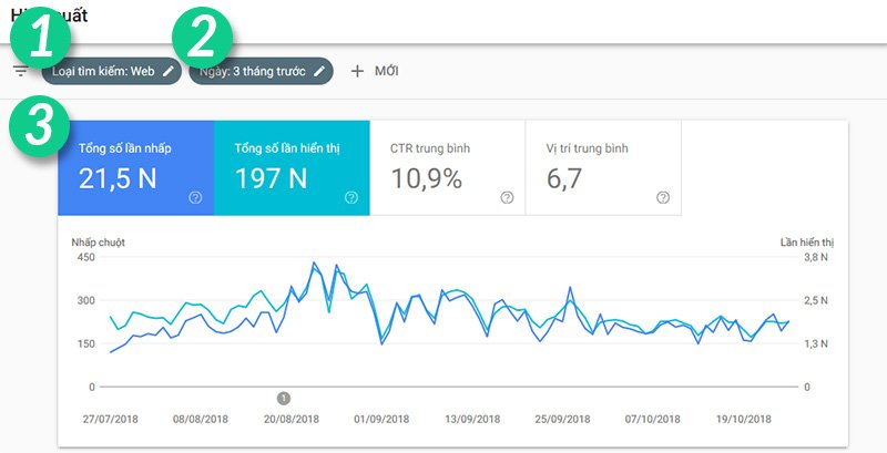 - Nhấp chuột: số lần người dùng click vào trang web của bạn khi tìm tìm kiếm từ khóa ở “Truy vấn”
