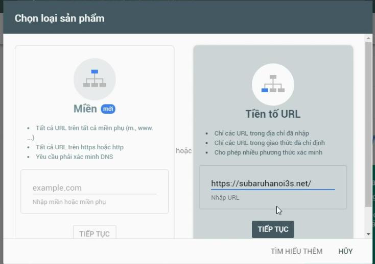- Chọn “Tiền tố URL”, sau đó điền URL website của bạn vào