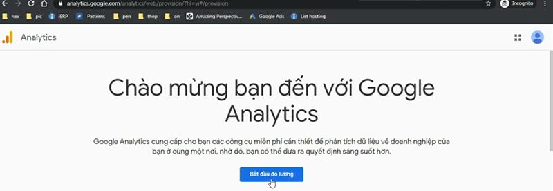 2/Bấm nút Bắt đầu đo lường để tạo mới tài khoản Google Analytics( nút bắt đầu đo lường chỉ hiển thị khi bạn đã đăng nhập vào tài khoản Google của bạn như Gmail hoặc youtube..)