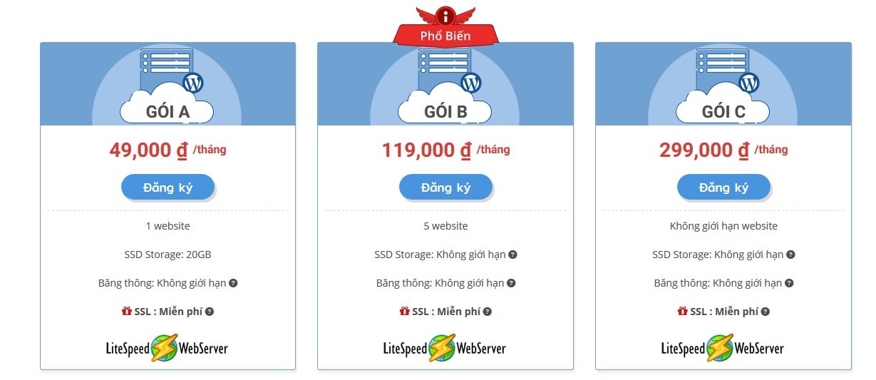- Chi phí: 1 triệu 6 cho gói B (đã gồm VAT) – cài được tối đa 5 website