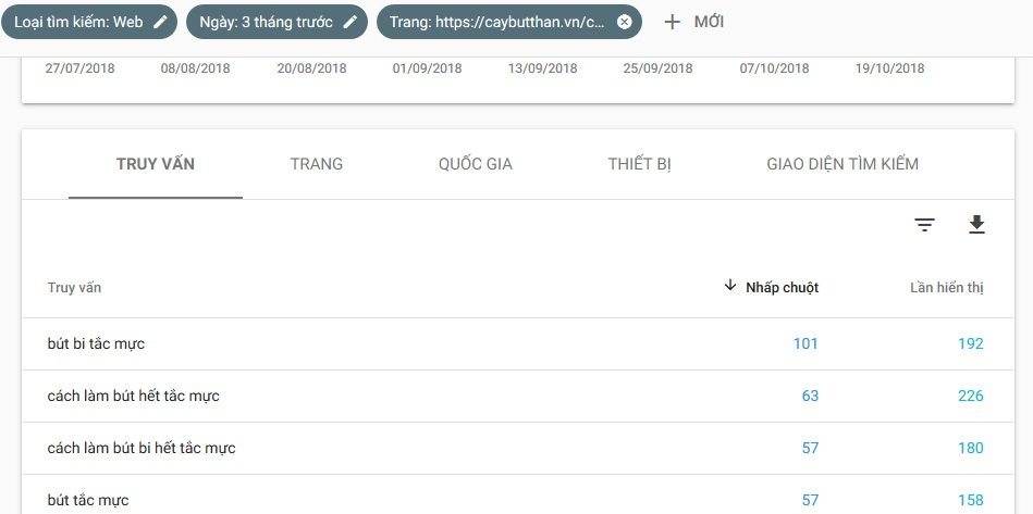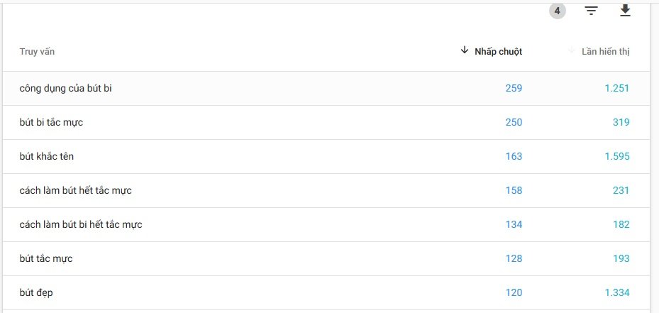 - Nhấp chuột: số lần người dùng click vào trang web của bạn khi tìm tìm kiếm từ khóa ở “Truy vấn”