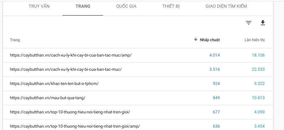 Đây là những trang “có giá trị về nội dung” trong website của bạn, cũng như “Truy vấn” nó cũng sẽ có nhấp chuột và hiển thị.