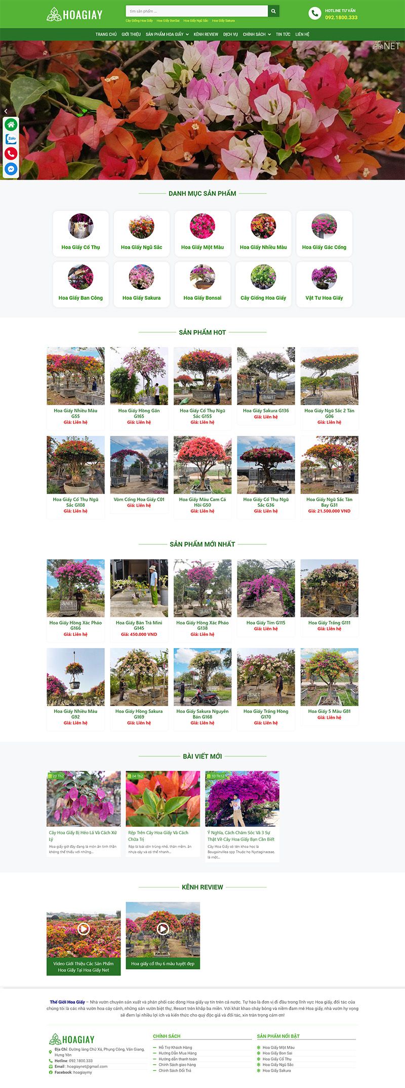 Website bán các sản phẩm hoa giấy, sản phẩm phân loại được sắp xếp điều hướng, dễ tìm kiếm, bổ sung mục review để khách hàng chèn video review cây